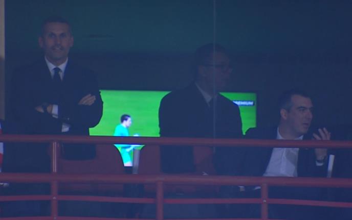 Sa njima meč posmatra i Vladimir Orlić, predsednik Skupštine Srbije.