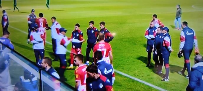 Trener crveno-belih Vladan Milojević povukao je ekipu sa terena i nije hteo da nastavi meč! Iako su sudije pokušale da pregovaraju, trener beogradskog tima je bio neumoljiv i svoje momke je poslao u svlačionicu.
