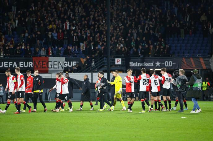 Fudbaleri Fejenorda odigrali su na svom terenu u Roterdamu nerešeno 1:1 protiv Rome, u prvoj utakmici plej-ofa za osminu finala Lige Evropa.