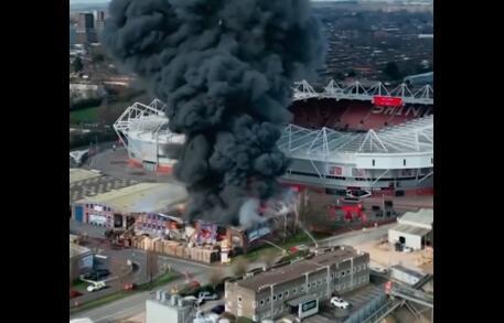 Vatrogasci su na licu mesta i bore se sa požarom, dok je osoblje skladišta uklanja hrpe paleta u blizini požara. Kako javlja BBC požar gori u frabrici koja se nalazi u neposrednoj blizini kultnog stadiona.