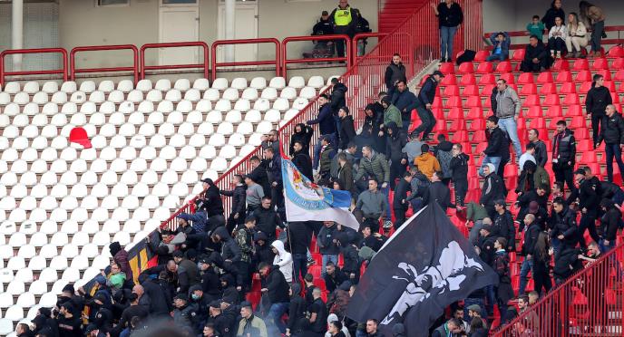 Tokom prvog poluvremena viđen je haos na tribinama.
