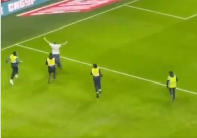 Uz dosta muke, redari su uspeli da stignu navijača i izbace ga sa terena, a kako je to izgledalo pogledajte u priloženom video snimku: