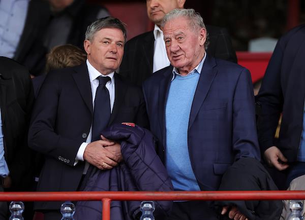 Selektor Srbije Dragan Stojković Piksi u društvu potpredsednika FK Vojvodina Milana Mandarića iz lože "Karađorđa" posmatra meč 28. kola Superlige Srbije koji Novosađani igraju sa Čukaričkim.