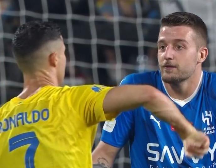U drugom poluvremenu Ronaldo je laktom udario jednog igrača Al Hilala i sasvim opravdano zaradio crveni karton.