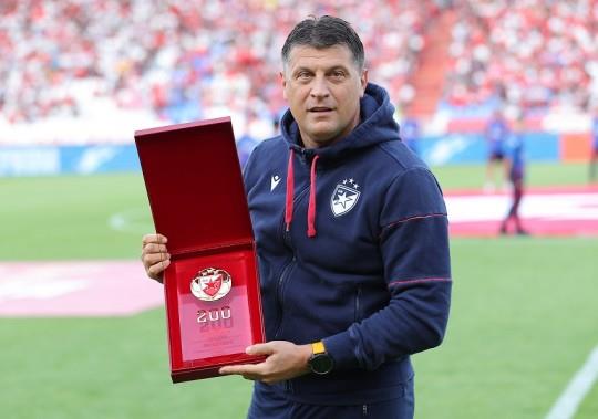 Šef stručnog štaba Crvene zvezde – Vladan Milojević je na 173. večitom derbiju obeležio jubilarnu 200. utakmicu na klupi Crvene zvezde, a pred početak meča poslednjeg kola Superlige Srbije simbolično priznanje mu je uručio sportski direktor – Mitar Mrkela.