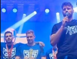 Igrači su izlazili jedan po jedan i držali govoru, a u jednom trenutku mikrofon je uzeo i Bruno Petković. Nakon gromoglasnih ovacija usledio je "hladan tuš".
