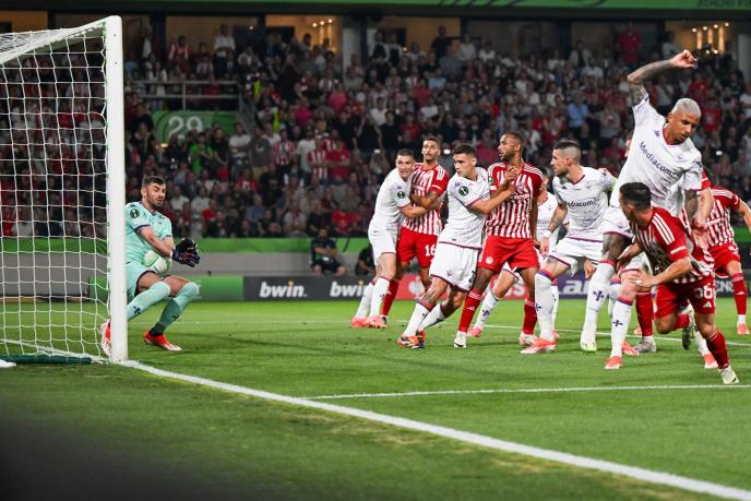 Orta je izveo prekid, Ibora zahvatio loptu glavom, a ona je prozujala pored stative gola Fjorentine. Najbolja prilika za grčki tim u nastavku.