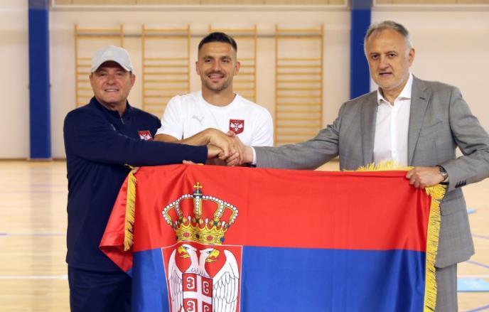 Na dan puta u Nemačku, reprezentativce naše zemlje u Staroj Pazovi posetio je ministar sporta u Vladi Republike Srbije Zoran Gajić i tom prilikom simbolično predao zastavu naše zemlje selektoru Draganu Stojkoviću i kapitenu Dušanu Tadiću uz želje da obraduju naciju dobrim igrama i rezultatima na Evropskom prvenstvu.