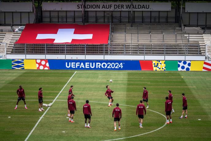 Reprezentacija Švajcarske je prvi put trenirala u ponedeljak na stadionu niželigaškog kluba Štutgart Kikers, uoči šampionata Evrope koji počinje u petak.