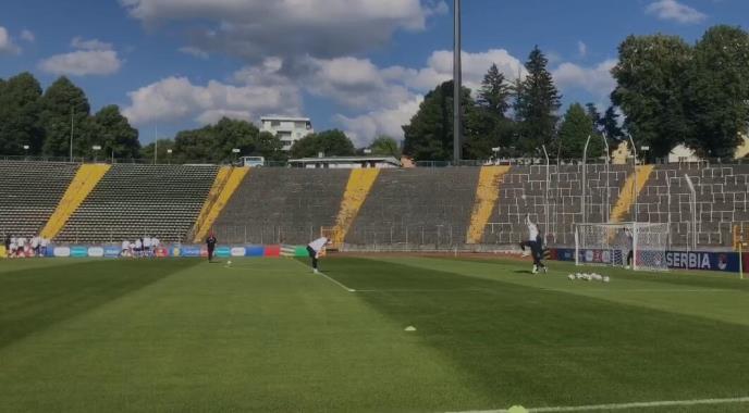 Fudbaleri Srbije izašli su na trening u Augzburgu, a u odličnom raspoloženju nameštali su "nišanske sprave".