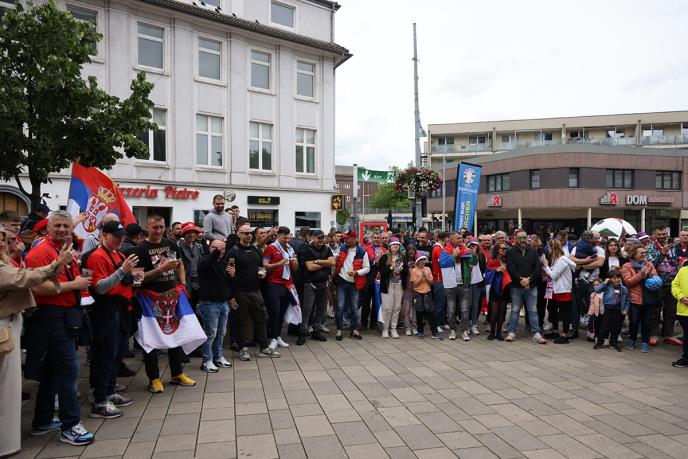 Navijači su već ispunili fan zonu, a raspoloženje je na vrhunskom nivou.