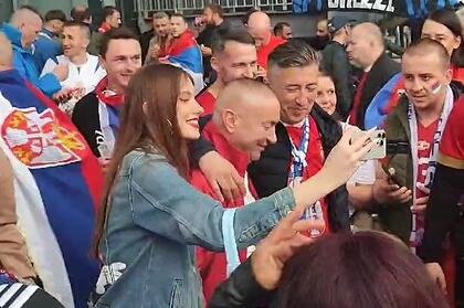 Nema navijača koji mu nije prišao, koji nije želeo da se fotografiše ili popriča sa našim pevačem, a kako je to izgledalo pogledajte u priloženom video snimku: