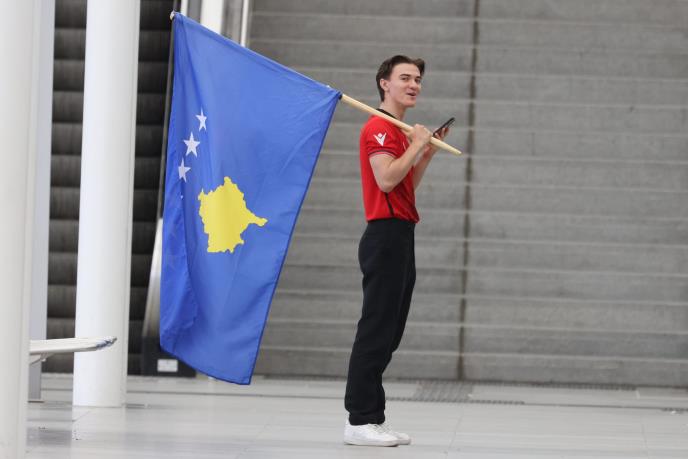 NOVI ŽESTOK SKANDAL I BRUTALNA PROVOKACIJA! Huligan maše zastavom LAŽNE DRŽAVE KOSOVO ispred stadiona na kom igra Srbija! (FOTO)