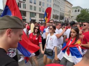 - Navijači Srbije uživaju pre meča, ovo je atmosfera u Minhenu - napisali su oni.
