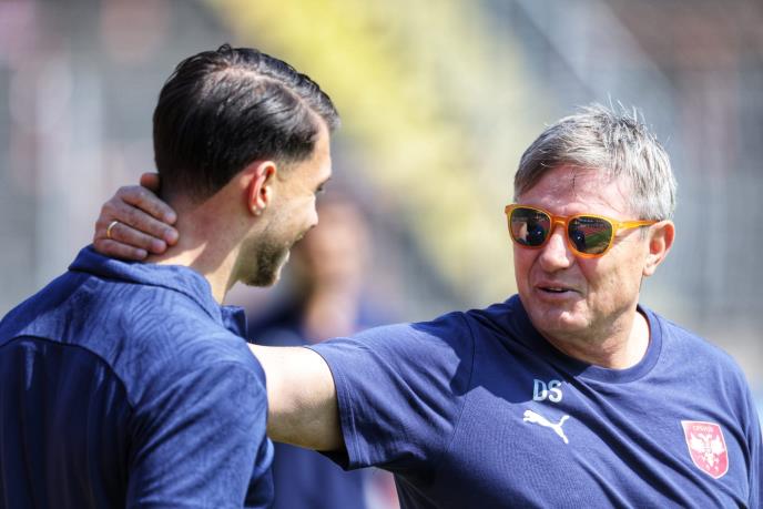 Prvi na teren izašli su selektor Dragan Stojković Piksi i reprezentativac Lazar Samardžić. Selektor je zagrlio mladog asa i dao mu određene instrukcije pred start treninga, pa mnogi smatraju da je ovo nagoveštaj da će Lazar početi duel sa Dancima.