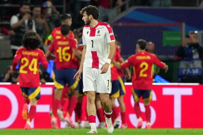 Potpuni šok u Kelnu, Gruzini su faktički drugi put prešli na polovinu Španije i poveli autogolm nakon nespretne reakcije Le Normana koji je prevario svog golmana Simona.