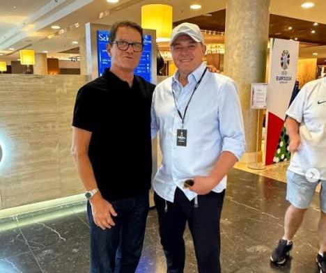Nakon što mu je Fudbalski savez Srbije (FSS) dao poverenje da i u budućnosti vodi "A" reprezentaciju, selektor Dragan Stojković Piksi otputovao je u Berlin, na finale Evropskog prvenstva u Nemačkoj. Na zvaničnom Instagram kanalu FSS, objavljena je sjajna fotografija na kojoj se vidi srdačan susret Dragana Stojkovića i Fabija Kapela.