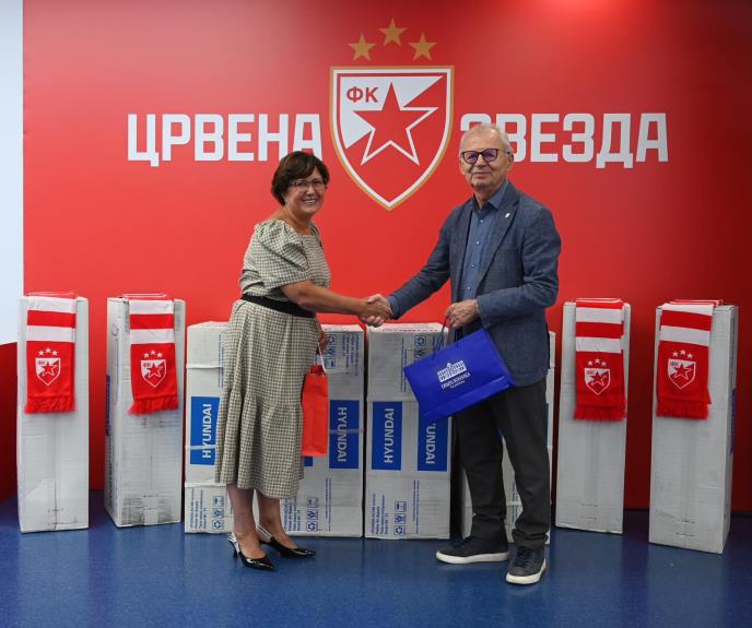 U Medija centru stadiona "Rajko Mitić", predsednik FK Crvena zvezda - Svetozar Mijailović dočekao je direktorku Opšte bolnice u Kruševcu - Vesnu Stević Gajić i uručio joj četiri klima uređaja.