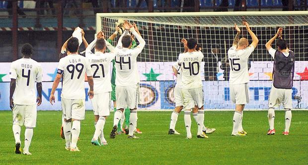 To nije ni čudo, s obzirom na to da su igrači tima iz Humske na tri susreta samo 10 puta šutnuli u okvir rivala. Da nešto škripi u napadu kluba iz Beograda videlo se još na prvom susretu s Nefčijem, kada su crno-beli samo jednom šutnuli u okvir gola. Na gostovanju u Kazanju šampion Srbije je delovao tek nešto bolje, čak je i stvorio dve-tri izgledne prilike, ali nije uspeo da postigne pogodak. Najbolju priliku da skinu mrak crno-beli su imali u Milanu, ali Lazar Marković nije uspeo da savlada Handanovića iako se našao sam, oči u oči s golmanom nacionalnog tima Slovenije.