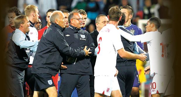 Više tužilaštvo u Kruševcu podiglo je juče optužni predlog protiv četvorice srpskih fudbalera i pomoćnog trenera reprezentacije Srbije zbog sumnje da su 16. oktobra na revanš utakmici baraža kvalifikacija za Evropsko prvenstvo 2013. godine fizički napali fudbalere Engleske!
