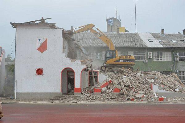 NOVI SAD - Rekonstrukcija stadiona Vojvodine u Novom Sadu počela je rušenjem čuvene klupske kuće sa svlačionicama na južnoj strani.