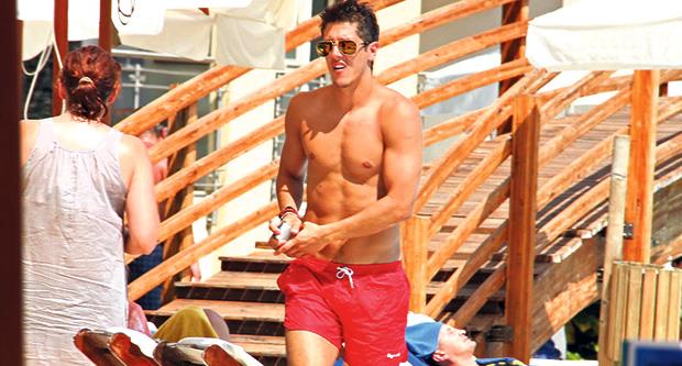 Oni su smešetni u „Splendidu“ u Budvi i dosta vremena provode na plaži tog hotela, kako bi fudbaler Fjorentine pronašao svoj mir daleko od očiju javnosti. Međutim, to mu nije u potpunosti uspelo jer ga je uhvatilo uvek spremno oko paparaca Kurira.