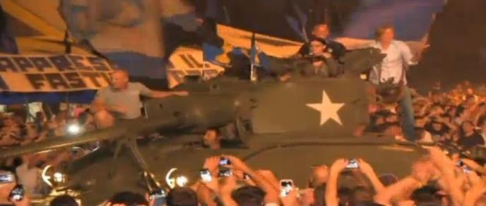 "Shvatio sam šta se dešava kada je tenk počeo da gazi automobile, ali nisam mogao ništa da vidim jer sam bio sasvim gore, na zadnjoj strani tenka. Nisam video da su na automobilima bili simboli dva fudbalska kluba”, napisao je Miljačo u pismu FS Italije.