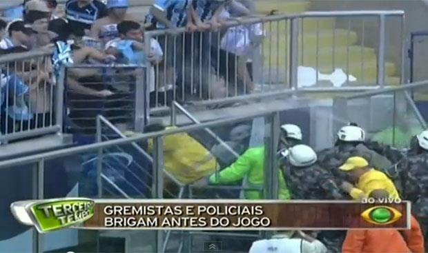 "Torcida Gremista" je došla u sukob sa pripadnicima specijalne policije, a za razliku od ovdašnjih duela, u kojima "plavi" obično izađu kao pobednici, ovog puta su navijači u Porto Alegreu uspeli u svojoj nameri i izbacili specijalce sa tribina.