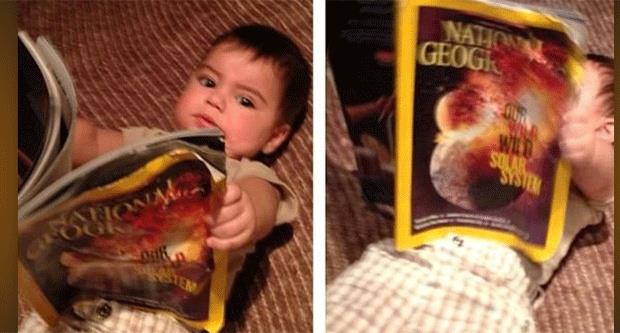 HAVAJI - Fudbaler Barselone Đerard Pike objavio je sliku šestomesečnog sina Milana gde se vidi da beba u rukama drži časopis Nacional geografik.