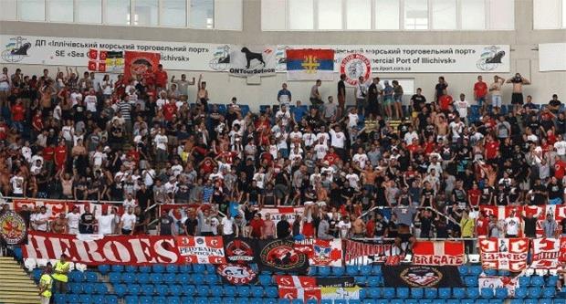 Navijači Crvene zvezde popularne Delije sukobili su se policijom, a onda i sa domaćim navijačima tokom drugog poluvremena prvog meča trećeg kola kvalifikacija za Ligu Evrope protiv Černomoreca (3:1).
