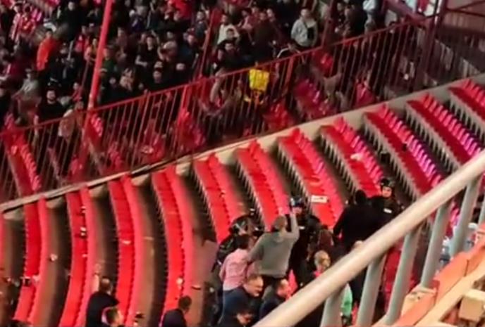 Navijači crveno-belih sa zapadne tribije su želeli da se obračunaju sa gostima. Očigledno je bilo određenih provokacija sa obe strane, a žandarmerija je morala da reaguje tom prilikom.