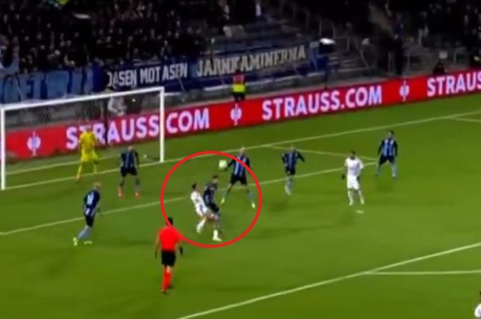 Sačekao je odbitak nakon jednog centaršuta i u stilu Zlatana Ibrahimovića, ili Olivijea Žirua poslao loptu u gol rivala.
