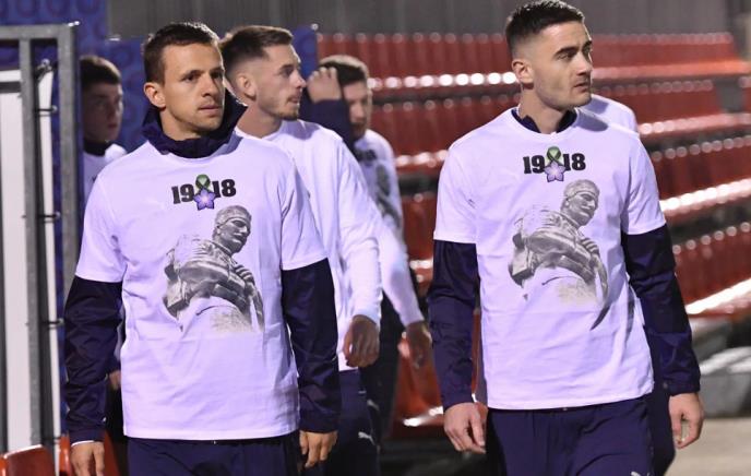 "Orlovi" na trening su izašli u majicama posvećenim Danu primirja u Prvom svetskom ratu, koji se danas obeležava kao državni praznik u Republici Srbiji.