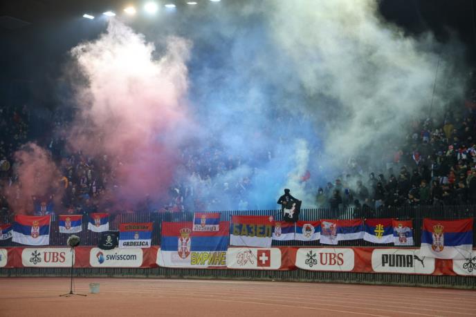 Vrlo je važno napomenuti da je Fudbalski savez Srbije već pod uslovnom kaznom UEFA zbog ponašanja navijača u meču protiv Švajcarske u Leskovcu (zviždanje himni, rasizam, itd…) tako da bi kazna disciplinske komisije UEFA mogla da bude vrlo rigorozna - prazne tribine.