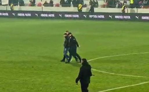 Po završetku utakmice, jedan navijač je utrčao na teren sa ciljem da stigne do fudbalera kako bi uzeo dres, ali ga je u tome sprečilo obezbeđenje.