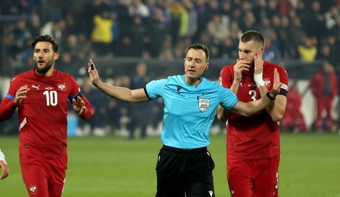 Ukrao je Srbiji Feliks Cvajer dva kornera, iako je i njemu i svima na terenu bilo jasno da mu ne ide u prilog takvo otvoreno naginjanje jednoj od reprezentacija u utakmici koja ima ogroman ulog. Punio je kartonima Srbe nemački sudija, znao je da u martu našu reprezentaciju čekaju dve važne utakmice za ostanak u A diviziji Lige nacija. I na kraju je uspeo, izbacio je čak četvoricu - Nikolu Milenkovića, Andriju Živkovića, Aleksu Terzića i Strahinju Pavlovića. Posebno su problematični bili kartoni kod štopera Milana. Ako je Pavlović zaslužio prvi, onda sigurno nije drugi, jer inercijom tela nije mogao da se zaustavi. Feliks Cvajer i njegovi pomoćnici kao da su jedva čekali tu situaciju, kako bi Pavlovića isterali sa terena, bez obzira što je do kraja meča ostao jedan minut iz sudijske nadoknade.