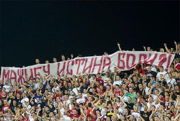 Parola koju su navijači Zvezde postavili bila je namenjena sudiji Miloradu Mažiću koji je prošle nedelje delio pravdu na meču crveno-belih i Jagodine.