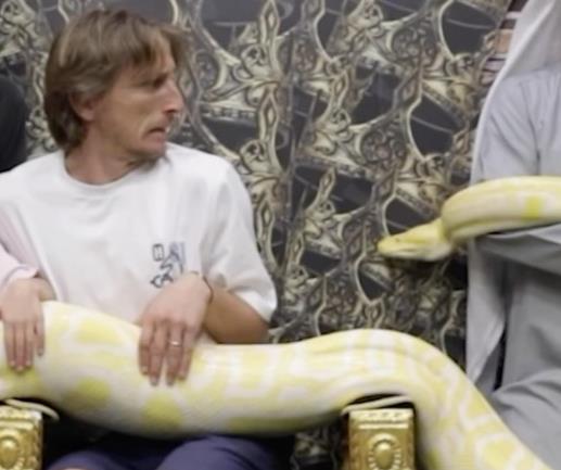 Reprezentativac Hrvatske, koji očito ima fobiju od zmija, pristao je da se fotografiše sa jednim džinovskim pitonom.