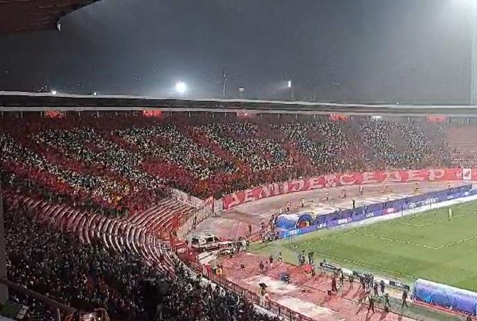 Navijači Crvene zvezde priredili su koreografiju pre početka utakmice protiv PSV-a.