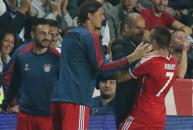 Riberi je u 47. minutu postigao izjednačujući gol za Bajern (1:1), a onda je otrčao do klupe da pogodak proslavi sa novim trenerom Pepom Gvardiolom. Francuz se zatrčaio i (ne)namerno poljubio Gvardiolu. U proslavi gola potom su mu se priključili ostali saigrači.