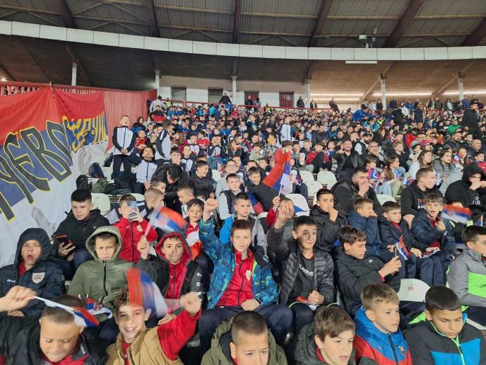 Posebnu pažnju na stadionu privukao je deo tribine gde su bila smeštena deca školskog uzrasta.