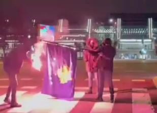 ZASTAVA LAŽNE DRŽAVE KOSOVO NA KONGRESU UEFA U BEOGRADU! Na SRAMNU provokaciju reagovale DELIJE - uzele je i zapalile (VIDEO)