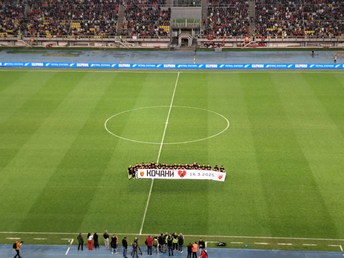 Navijači Vardara upriličili su dirljivu koreografiju, preko čitave tribine ispisano je "Kočani", a na manjim transparentima i reč "hvala" na nekoliko jezika.