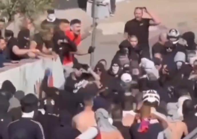 U toku dana se na društvenim mrežama pojavio snimak jednog navijača koji sa rukama vezanim lisicama beži od policajca.