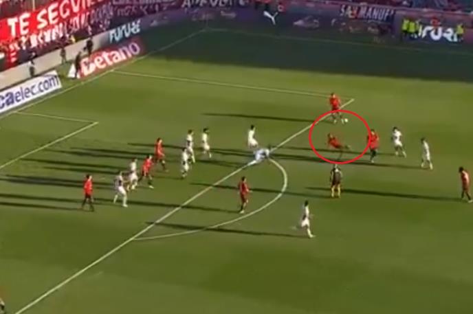Nakon kornera u 57. minutu lopta se odbila ka njemu, ali pošto je bio u duelu sa igračem protivničkog tima nije uspeo da je prihvati. Lopta je potom pala na zemlju i odbila se visoko, a Montijel je odlučio da pokuša da na izuzetno atraktivan način donese prednost svom timu.
