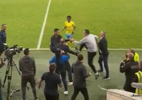 Odmah su prišli saradnici dvojice trenera, fudbaleri oba tima, kao i pripadnici obezbeđenja, pa je sprečen još veći haos.