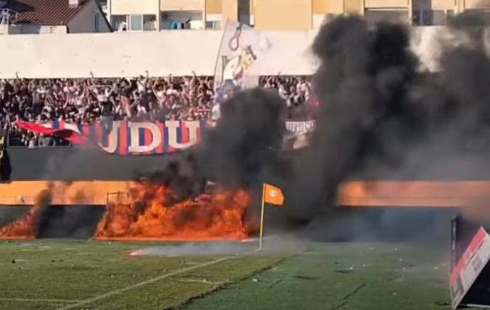 UŽAS U HRVATSKOJ! Torcida ZAPALILA STADION ŠIBENIKA! Gust dim pretio da proguta sve! Baklje su letele svuda, nastradao golman Hajduka!