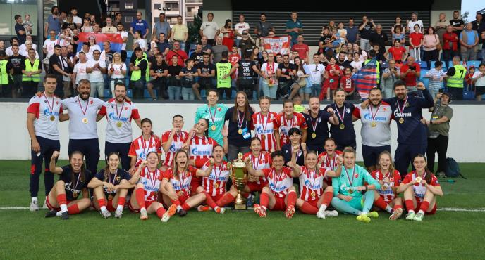 Ženski fudbalski klub Crvena zvezda upisao je još jedan zlatnim slovima ispisan uspeh – osvojivši duplu krunu, odbranivši i titulu šampiona Srbije i trofej Kupa Srbije!