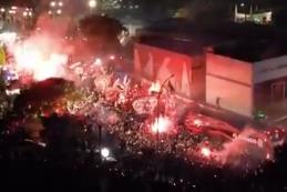 Oko 3.000 vatrenih pristalica "rubro-negra" okupilo se da pruži podršku ekipi, ali ono što je počelo kao karnevalska atmosfera, ubrzo se pretvorilo u ozbiljan sukob i haotične scene nasilja.