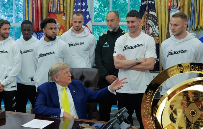 Naime, osim igrača bili su tu i čelnici "stare dame", kao i predsednik FIFA Đani Infantino, a prisutni novinari iskoristili su priliku da se dotaknu i političkih pitanja. Jedno od njih bilo je o stavovima prethodnog predsednika Amerike o transrodnim osobama u sportu.